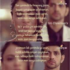 Sen yonimda bo'lmasang jonim, kuysiz yangragan qo'shiqman. balki sevmassan meni zorim, lekin men senga oshiqman. ko'z yoshingni asrolmadim, endi har jazoga loyiqman. yuzinga tabassum berolmadim, lekin men senga oshiqman jonimsan lek yonimda yo'qsan, huddi sohilda qolgan qayiqman. men telbaga balki oshiqmassan, lekin men senga oshiqman